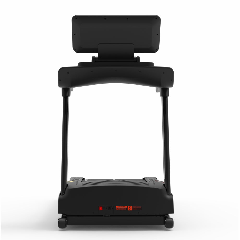 The LCD display with blue backlight shows speed, time, distance, calories, incline, and pulse, keeping your progress on track. With 70 pre-set programs, 5 user modes, and a fat burn program, this treadmill adapts to your goals. Supporting a max user weight of 150 kg, the MP722 is ideal for gyms and home users seeking durability and performance. MP3 compatibility and compact assembly dimensions make it both entertaining and space-efficient.