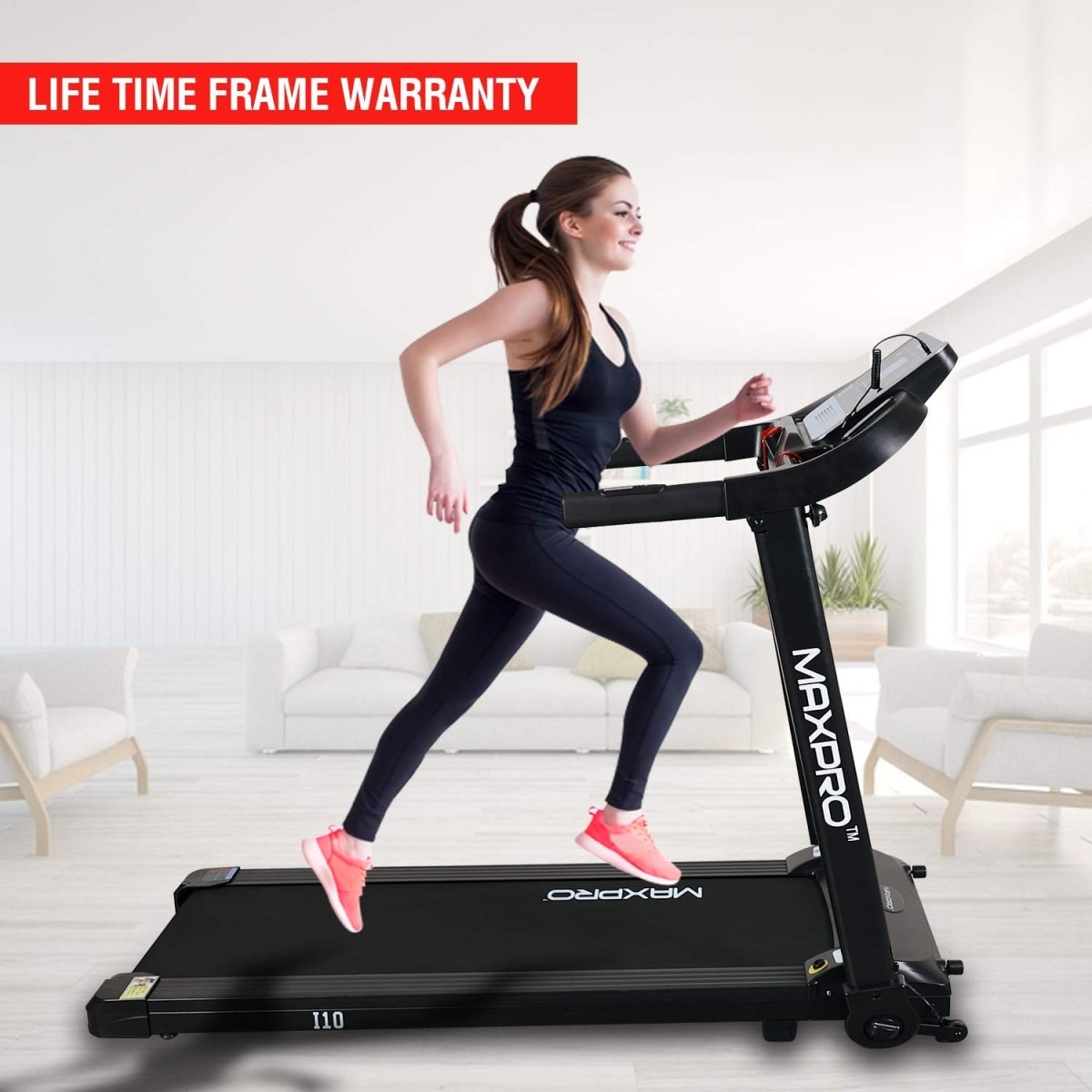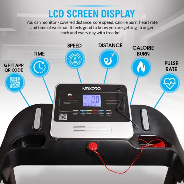 Maxpro I10 (3 HP Peak, 3 levels Manual Incline) Motorized Treadmill for Home with 12 preset Workouts, Max Speed 12km/hr. LCD Display | Max. User Weight 90Kg | Best running machine for home gym