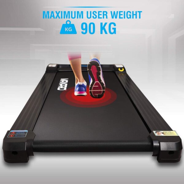 - Running Surface & Manual Incline – Large Walking/Running Surface – 1210x410mm. The frame is made of high-quality steel, anti-slip anti-static lawn texture belt, multi-layer composite belt. 2 manual incline levels. Speed: 1 to 12 km/hr speed levels available, you can select different speed base on your physical condition and exercise based. 12 pre-set programs. MAXPRO I10 TREADMILL MAX USER WEIGHT 90 KGS.