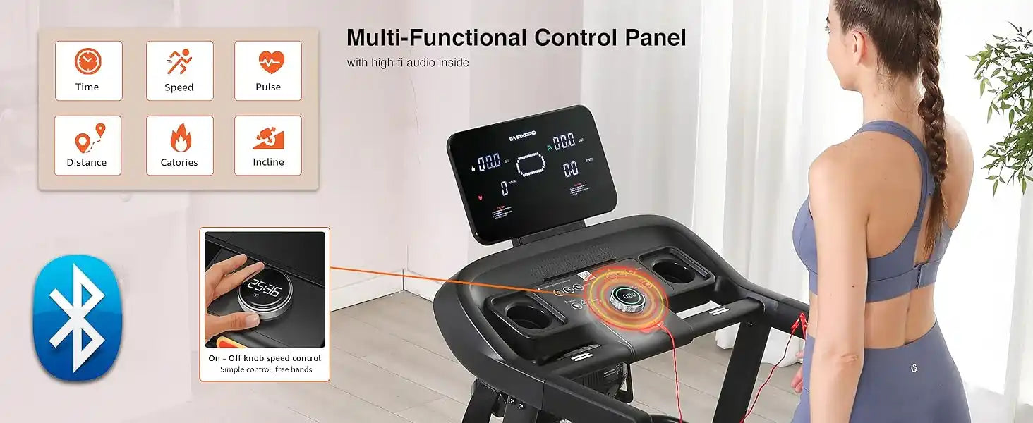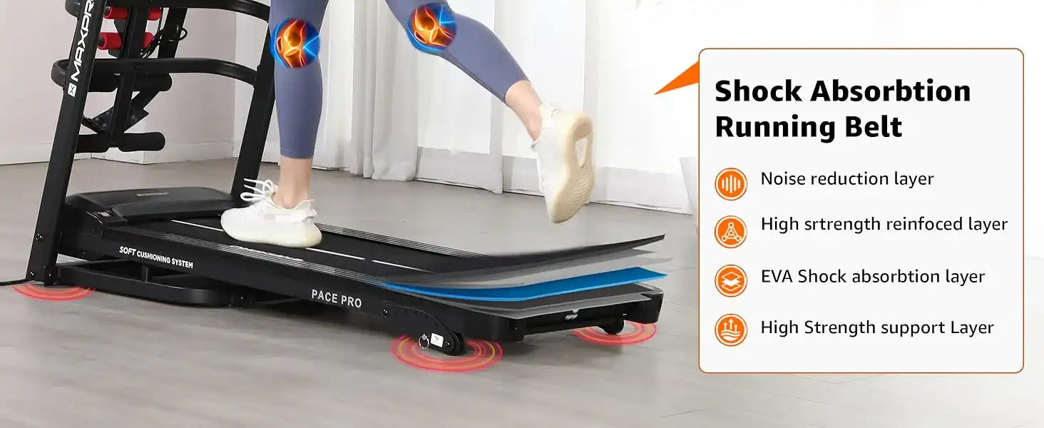 - Comfort at Every Step with a Cushioned Running Belt - Exercises are painless with this seamless treadmill's 5-layer anti-skid running belt, which absorbs shock and features a superior cushioned system to lessen joint strain.