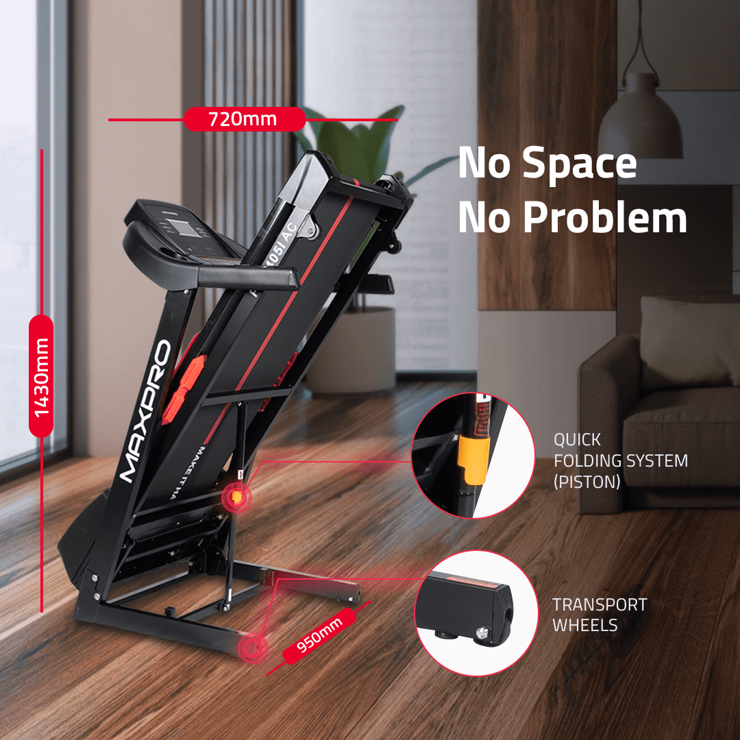 Maxpro TORQUE PLUS (PTA405IAC) AC Motorized Auto Incline Foldable Treadmill for home 120 kg (5HP PEAK) | Running Machine for Home Gym | (MAX. Speed 16Km/Hr, 15 Level Incline) FITSHOW App Connection