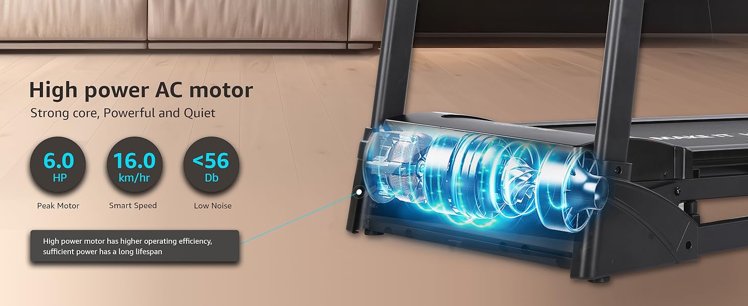 - Powerful AC Motor - 6 HP peak AC motor to support your speed and endurance while using a treadmill, even at high-intensity level training for longer hours without any interference.