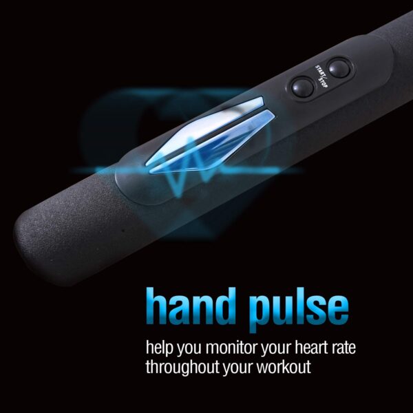 - 【RUNNING SURFACE】 (L x W) – 1100 X 400mm, 5 Layer Anti-Skid, grass texture running belt. Hand held Pulse Stay in your target heart rate zone with built-in thumb sensors that help you monitor your heart rate throughout your workout. Easily foldable. Wheels for easy transportation. PTM-101 TREADMILL MAX USER WEIGHT 90 KGS.